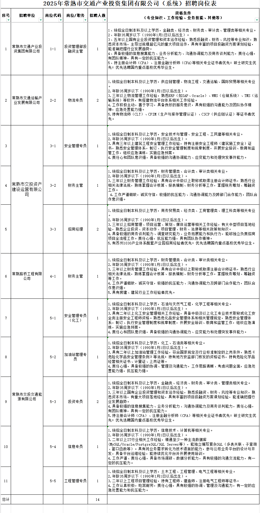 附件:2025年常熟市交通产业投资集团有限公司(系统)招聘岗位表