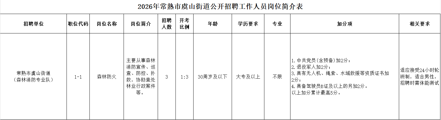 招聘岗位及条件等详见《2026年常熟市虞山街道公开招聘工作人员岗位简介表》(附件1)。