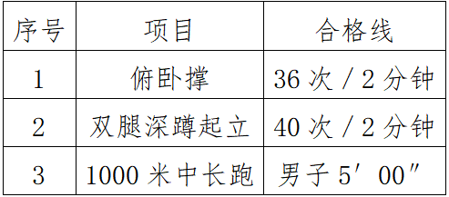 1.体能测试内容为: